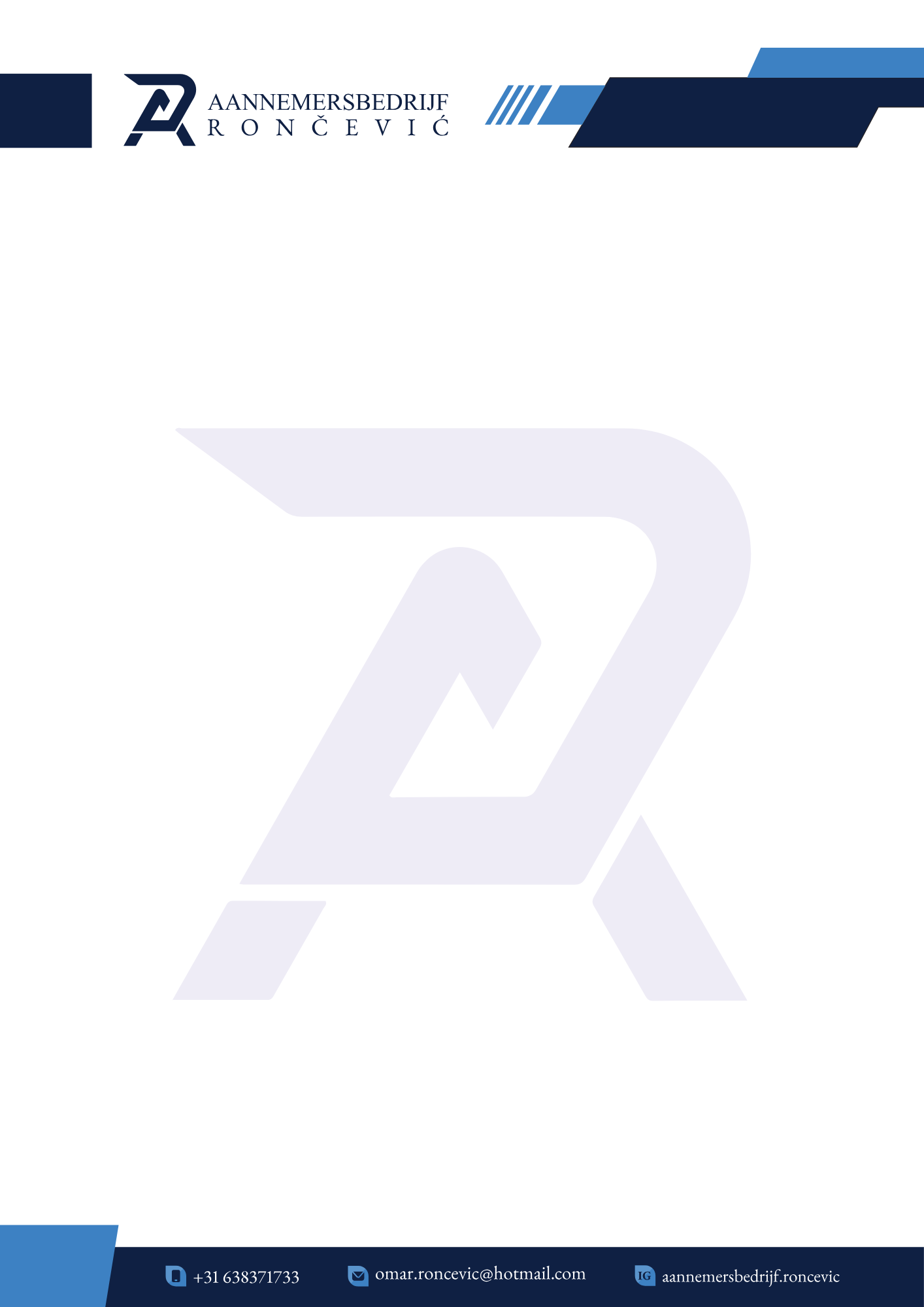 Voor Aannemersbedrijf Roncevic ontwikkelden we een frisse en moderne huisstijl die past bij hun positionering als jong en ambitieus bouwbedrijf.