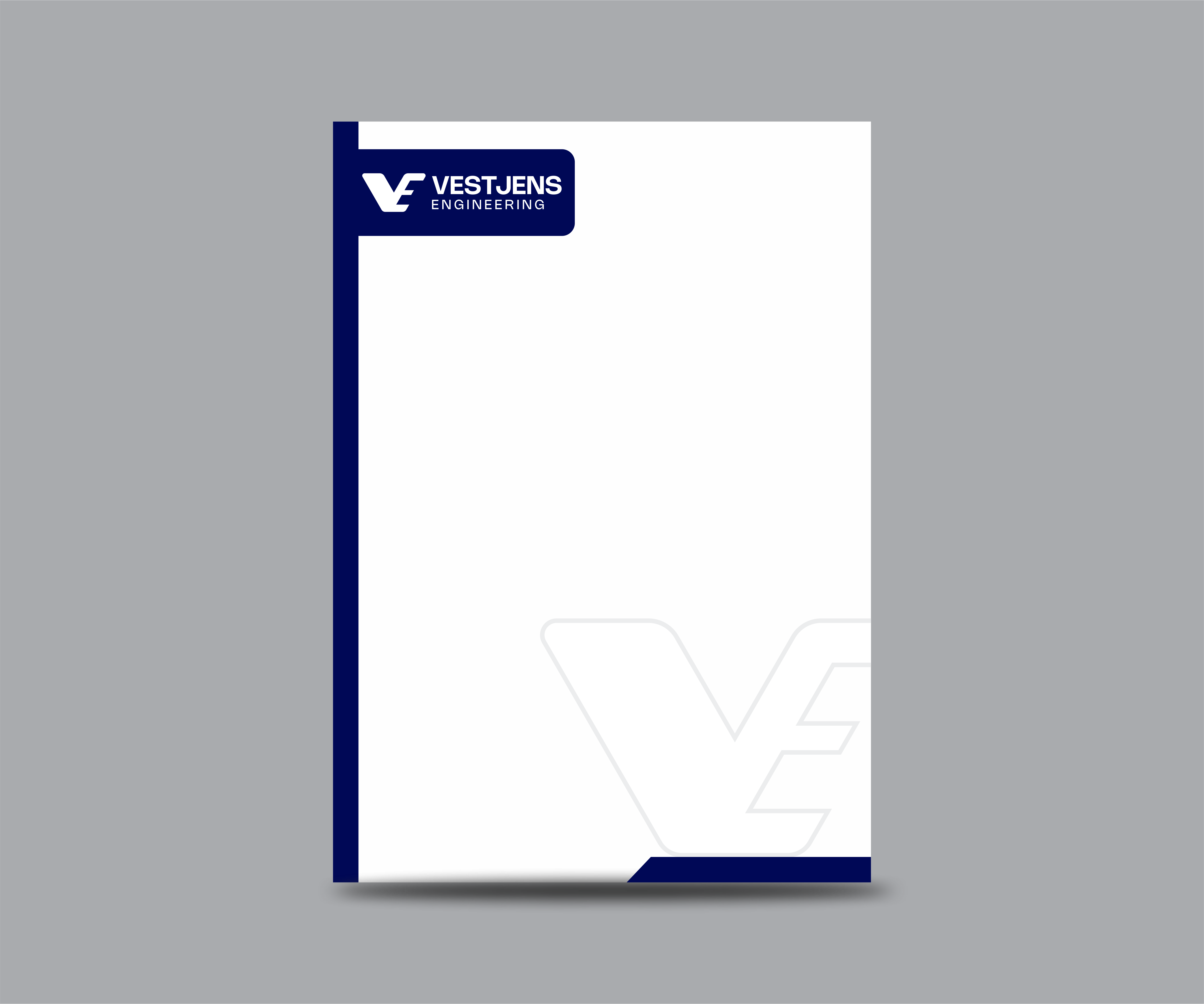 Vestjens Engineering benaderde ons met de vraag om een volledige visuele identiteit te ontwikkelen. Als nieuw engineeringbureau in de werktuigbouwkunde wilden ze direct professioneel en onderscheidend naar buiten treden.
